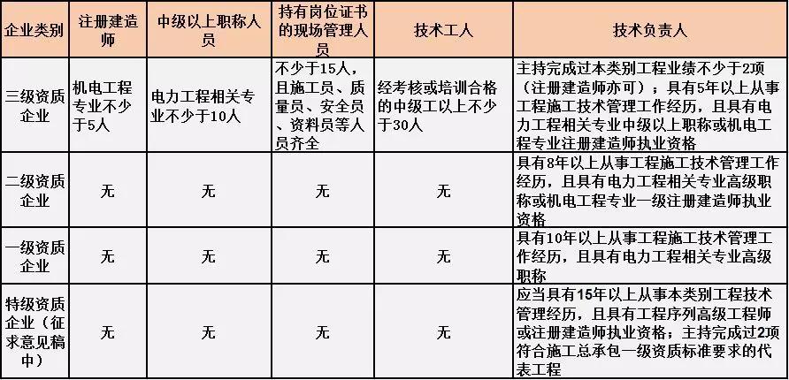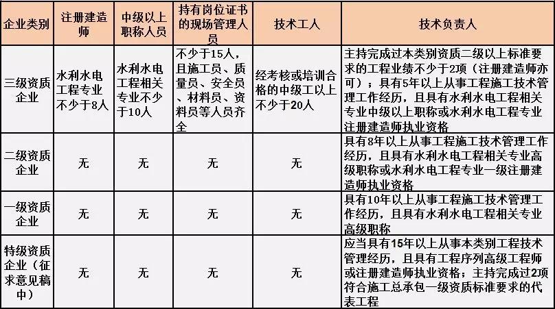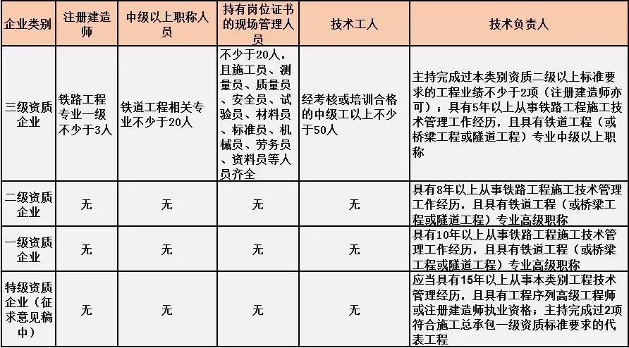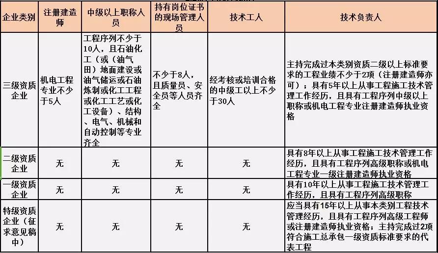 換句話說,并不是所有企業(yè)資質(zhì)都不要求有建造師等企業(yè)人員。施工總承包三級資質(zhì)企業(yè)對建造師等人員仍有要求,一級資質(zhì)、二級資質(zhì)企業(yè)保留技術(shù)負責(zé)人這一項要求,特級資質(zhì)另有規(guī)定。